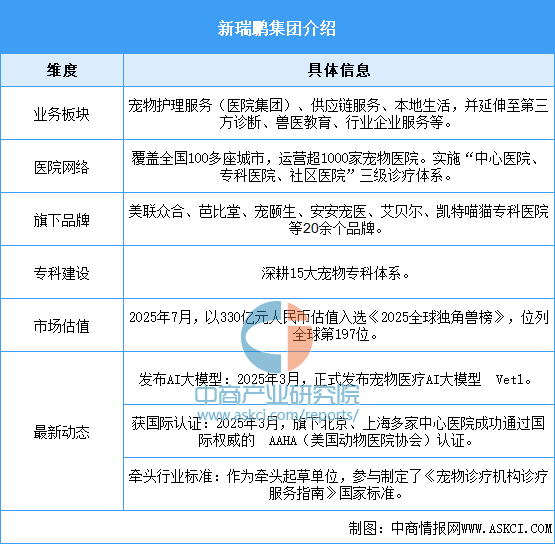 新瑞鵬集團(tuán)是中國(guó)領(lǐng)先的綜合性寵物醫(yī)療生態(tài)平臺(tái),以美聯(lián)眾合、芭比堂、寵頤生等連鎖醫(yī)院品牌為核心,在全國(guó)百余城市運(yùn)營(yíng)著超過(guò)1000家醫(yī)院。集團(tuán)業(yè)務(wù)已擴(kuò)展至供應(yīng)鏈、第三方診斷、獸醫(yī)教育、寵物保險(xiǎn)及線上平臺(tái)等多個(gè)協(xié)同領(lǐng)域,并構(gòu)建了15大專科體系,其自主研發(fā)的AI影像診斷等系統(tǒng)已廣泛應(yīng)用于全國(guó)網(wǎng)絡(luò)。