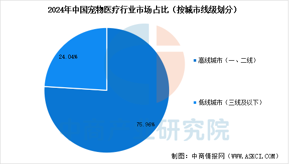 中國(guó)寵物醫(yī)療市場(chǎng)呈現(xiàn)出明顯的二元格局,高線城市憑借強(qiáng)大的消費(fèi)能力占據(jù)主導(dǎo),低線城市則孕育著巨大的增長(zhǎng)潛力。中商產(chǎn)業(yè)研究院發(fā)布的《2025-2030年中國(guó)寵物醫(yī)療市場(chǎng)深度研究及發(fā)展前景投資預(yù)測(cè)分析報(bào)告》顯示,2024年高線城市市場(chǎng)規(guī)模達(dá)278億元,占比75.96%,寵物主消費(fèi)意愿強(qiáng)、對(duì)專科及高端服務(wù)接受度高,是當(dāng)前行業(yè)發(fā)展的核心區(qū)域。低線城市市場(chǎng)規(guī)模為88億元,占比24.04%,低線城市寵物飼養(yǎng)基數(shù)龐大,增長(zhǎng)速度快,是未來(lái)連鎖品牌市場(chǎng)下沉、開(kāi)辟新增長(zhǎng)曲線的關(guān)鍵潛力市場(chǎng)。