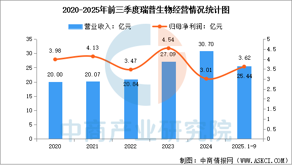 瑞普生物股份有限公司為經(jīng)濟(jì)動(dòng)物及伴侶動(dòng)物提供全生命周期的疫病防控產(chǎn)品及服務(wù),是中國(guó)規(guī)模最大、產(chǎn)品種類最全的獸藥企業(yè)之一,也是國(guó)家重大動(dòng)物疫病(高致病性禽流感、口蹄疫)防控疫苗生產(chǎn)企業(yè)。2025年前三季度,公司實(shí)現(xiàn)營(yíng)業(yè)收入25.44億元,同比增長(zhǎng)13.50%,實(shí)現(xiàn)歸屬于上市公司股東的凈利潤(rùn)3.62億元,同比增長(zhǎng)45.64%。上半年,公司禽用生物制品收入6.105億元,占比35.75%,制劑及原料藥收入5.179億元,占比30.33%,寵物供應(yīng)鏈?zhǔn)杖?.764億元,占比22.05%。