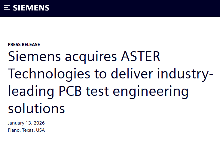 西門子收購ASTER Technologies:強化PCB設計與測試領域的戰略布局