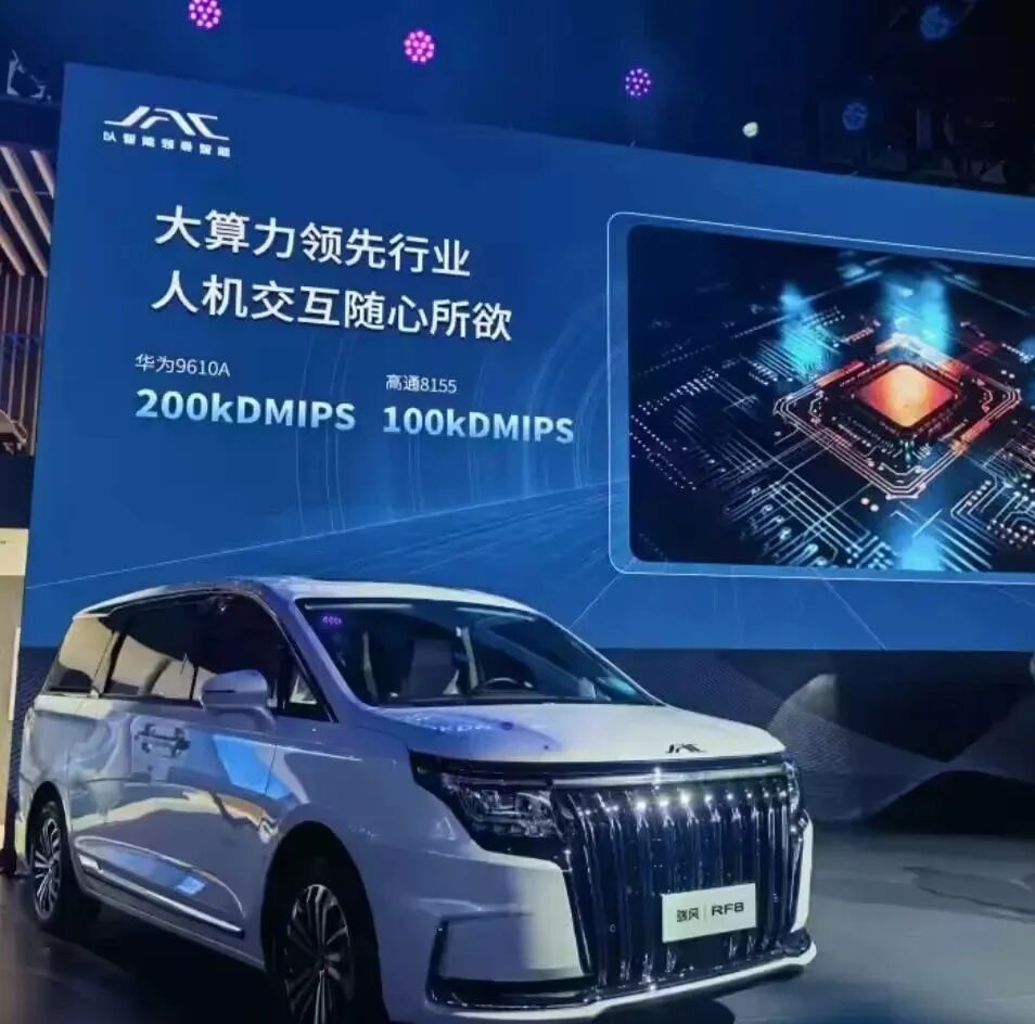 在車展上,江淮汽車揭曉了華為最新一代的車規級芯片 ——9610A ,稱其算力可達 200kDMIPS,遠高于高通 8155 的 100kDMIPS。